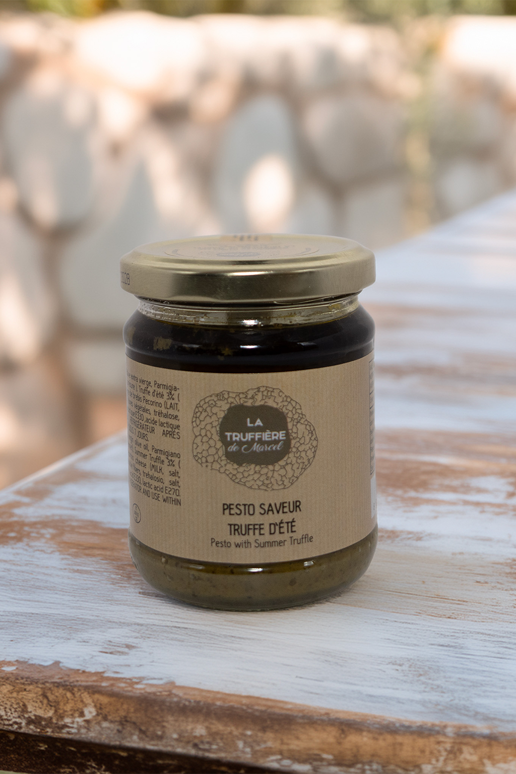 Élaboré selon le savoir-faire artisanal de La Truffière de Marcel, ce pesto associe des ingrédients rigoureusement sélectionnés et l’arôme délicat de la truffe d’été. Sa saveur constante et authentique en fait un allié incontournable pour une cuisine créative et raffinée.